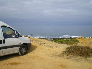 On vise le Cabo de Roca, je fais deviner à lulu ce qu'a ce point de particulier en Europe .. et ouais, on est le plus à l'ouest, et pour venir en ce point, il faut traverser des landes très originales, et très jolies, avec de belles couleurs valonnées.