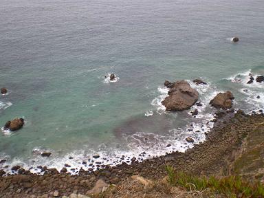 On sort de Sintra, par un petit chemin de montagne, au milieu de la forêt, c'est toujours sympa, car toujours des toits en pic tout autour de nous. On arrive à Colares, petit village joli, puis on part pour faire le tour de la côte.