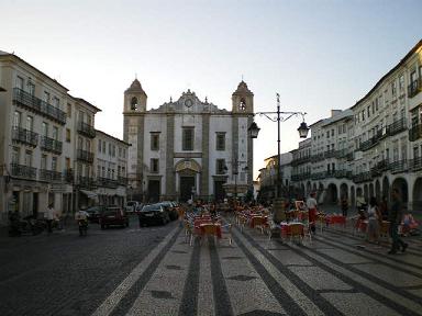 On commence notre visite par rentrer dans la vieille ville par la Rua de Republica, On croise le parc public, pour aller voir la Praça 1e de Maio, c'est déjà imposant, mais pas exceptionnel, non, c'est en remontant la Rua de Republica qu'on va commencer à voir plein de choses, notamment une Praça de Giraldo bien jolie, bien vivante.
