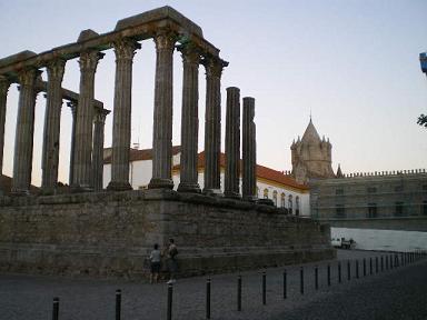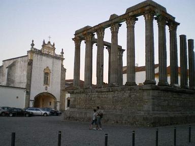 On remonte et on tombe nez à nez avec un temple romain, et un bon nombre de monuments dans le coin, wouuuaaaahhh .. on regarde un peu le paysage charmant, naturel, calme, paisible .. c'est ça qui est bien à Evora, c'est lieu touristique, mais paisible, surtout à cette heure de la journée (après 18h).