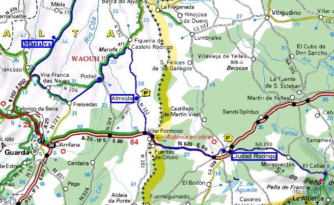 Là, on fait un petit détour, qui ne servira pas à grand chose, on voulait aller jusqu'à Guarda, mais en fait, on s'est arrêté à Freixedas, pour remonter vers Tamantios sur une petite route pas moche, mais pas non plus transcendant .. et à Tamantios, on remonte vers le nord .. un petit détour .. long détour quand même ... lulu s'endormait vraiment, et moi j'étais pas en forme non plus.