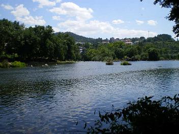 ah .. et on commence à avoir faim, donc on s'arrête à Amarante.. La ville est agréable, ce n'est pas une ville qu'on se souviendra pour ces bâtiments, mais c'est une ville moyenne très agréable, surtout avec la rivière (Rio Tamega) qui passe au milieu. On mangera au bord de cette rivière avec lulu, coin sympathique et paisible en plein milieu de la ville, on est bien content de nous, sauf que sur l'autre rive, des jeunes s'amusent à s'éclabousser dans l'eau .. ce n'est pas si dérangeant que ça sauf que ... ce sont des français ... les casse-lucioles !