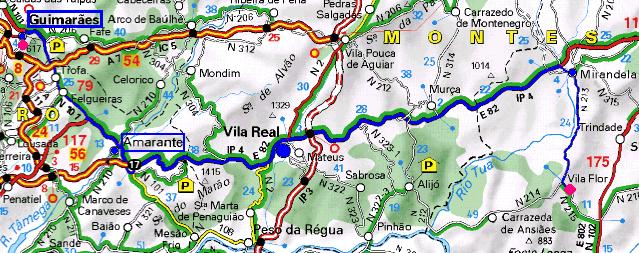 On speede donc jusqu'à Vila Real, on ne fait même pas attention à Mirandela, la route est montagneuse, mais c'est de la deux voies agréable car jolie, on arrive assez tôt à Vila Real, après presque 100 kilomètres. C'est bien, on a bien avancé (mais on a zappé la ville de Bragança qui m'intéressait .. dommage ...).