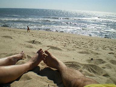 Bon, allez, fini la rigolade, on va à la plage ! On arrive sur Estrela, mais on est pas sur la route qui borde la mer, mais sur une droite parallèle (oulaaaa, déformation professionnelle, route parallèle), et au bout d'un moment, ben on s'est dit, allez, on s'enfonce !