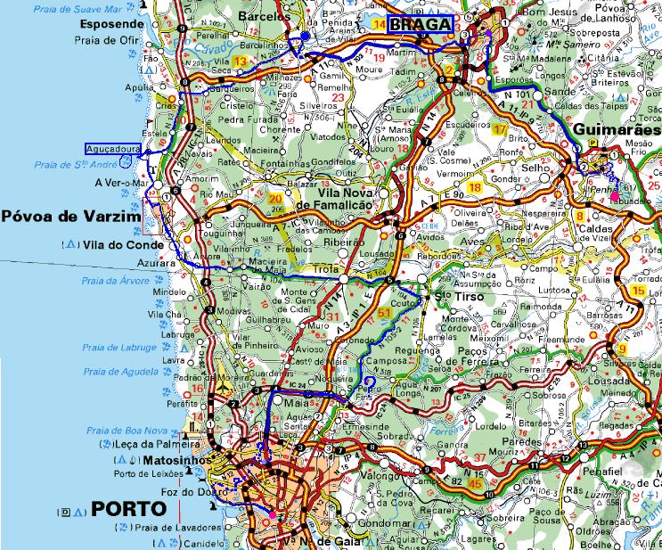 Et là, pfiouuuuu, traversée de Povoa de Varzim et de Vila do Conde (et son énorme aqueduc)... alors imaginez que trois kilomètres au nord, on était tout tranquille sur une belle plage .. et ben là, c'est le gros bordel .. énormément de circulation .. je crois que j'ai failli craquer .. plus d'une heure dans des embouteillages pas voulus .. Le caca ...