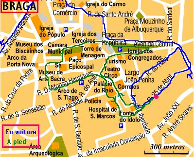 On arrive à Braga, une grande ville du nord du Portugal, mais au final, on n'a pas vraiment envie d'en faire une grande visite, sachant qu'on ne peut pas vraiment sortir les vélos, bloqués dans la voiture. Et puis, Braga, ça a l'air tout chaud pour trouver une place de parking gratuite .. on cherche .. on cherche .. et finalement assez rapidement, on en trouve une petite pas loin du centre ville (Rua 25 de abril), très bien.