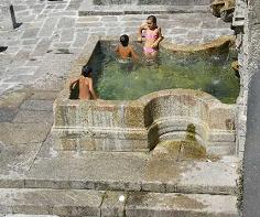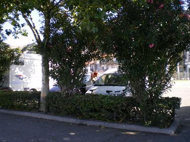 Et on y retourne, pour redescendre dans la ville, en faisant des zigzag, en remontant parfois pour retomber sur la ... cathédrâle, vue d'en bas, où les enfants se baignaient dans la piscine, puis on rencontre une nouvelle petite église assez jolie, puis on continue la descente, la main sur les freins pour voir toutes les fayences des maisons, pour aussi éviter les chemins en escaliers, car la pente est parfois très pentue ..