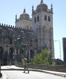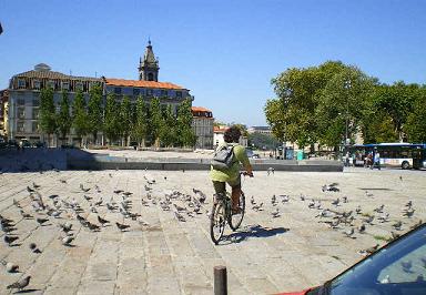 On rentre à la voiture, on a oublié le dico et je ne sais plus quoi .. Puis on remonte dans le centre en vélo .. et là, ça monte sévère. A un moment, la montée (qui était agréable au milieu de la jolie ville pavée) s'arrête, et on commence notre visite pour voir quelques monuments très jolis, avec notamment une grande place, avec une grande église qui monte haut haut (Igreja das Carmelitas).