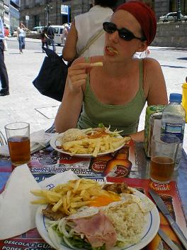 Puis on descend un peu dans les petites ruelles, pour retrouver une place encore vivante (en haut de la Rua das Flores ??), on se pose dans un petit bistrot (Flor de Ipanema), où au milieu des spécialités locales, on prendra un plat digne des cafét' américaines (steak, bacon, frites, riz, salades, oeufs, ...). On se remplit bien le bidon .. miam !