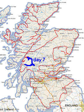 Petit détour sur l'A82 pour retrouver Crianlarich, pas loin du Ben More, que l'on peut deviner. Cette ville est encadrée sur mon plan, donc à priori remarquable ...